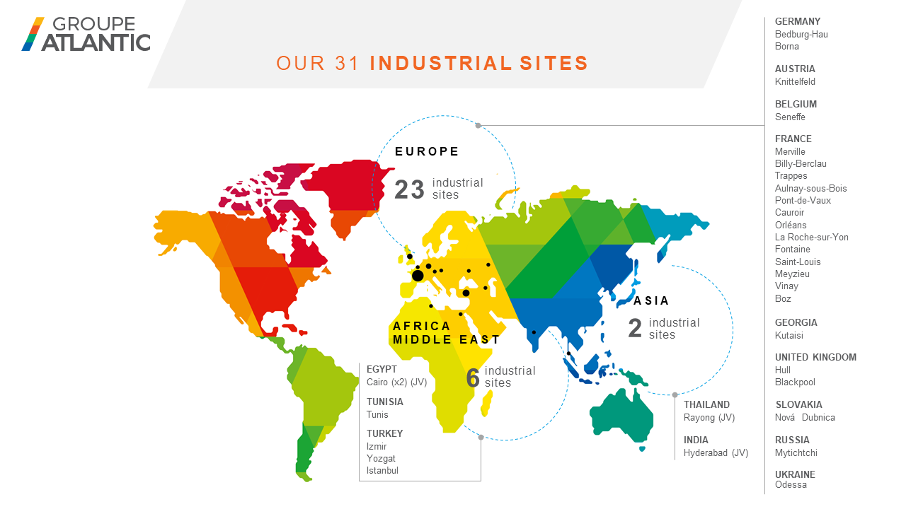 To offer competitive product ranges and support its organic growth, Groupe Atlantic invests in production nearest to target markets, building factories in countries such as Egypt, Ukraine, Turkey and Thailand. Today, more than a third of the Group's workforce manufacture and market our products internationally. We adopt differentiated strategies based on our products and activities.